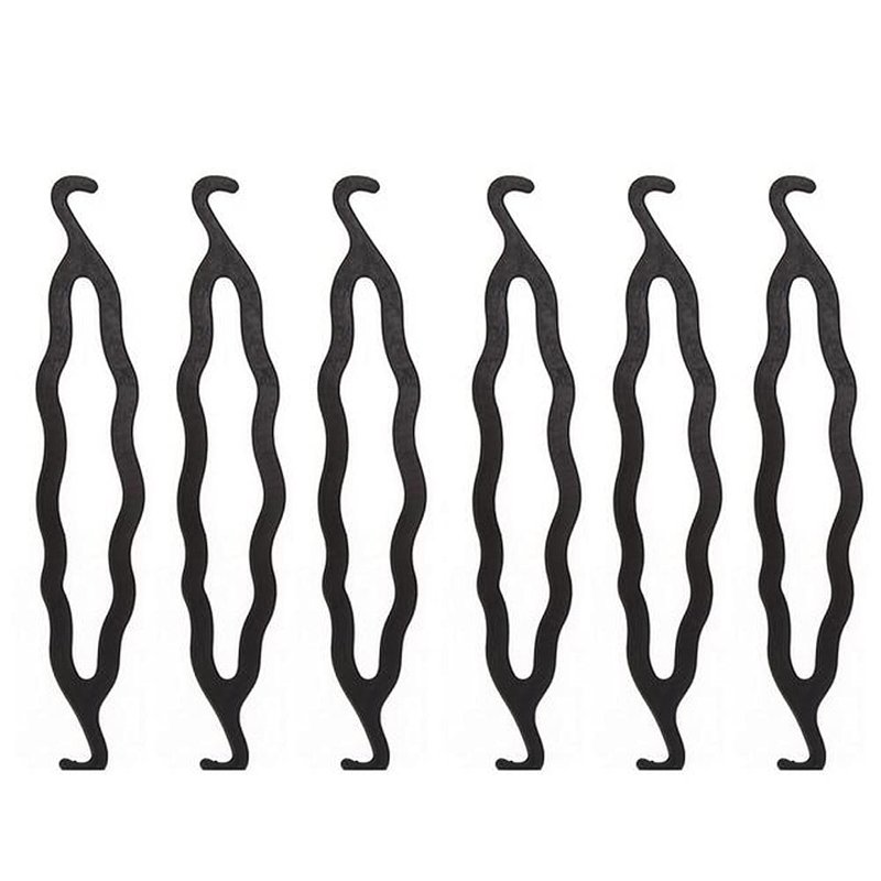 6Pcs Black Resin Double-end Hook Hair Bun Makers Foldable Anti-slip Hair Donut Shapers Hair Roll-up Updo Braiding Tools Insert Pads Holders for Women Girls Hair Styling