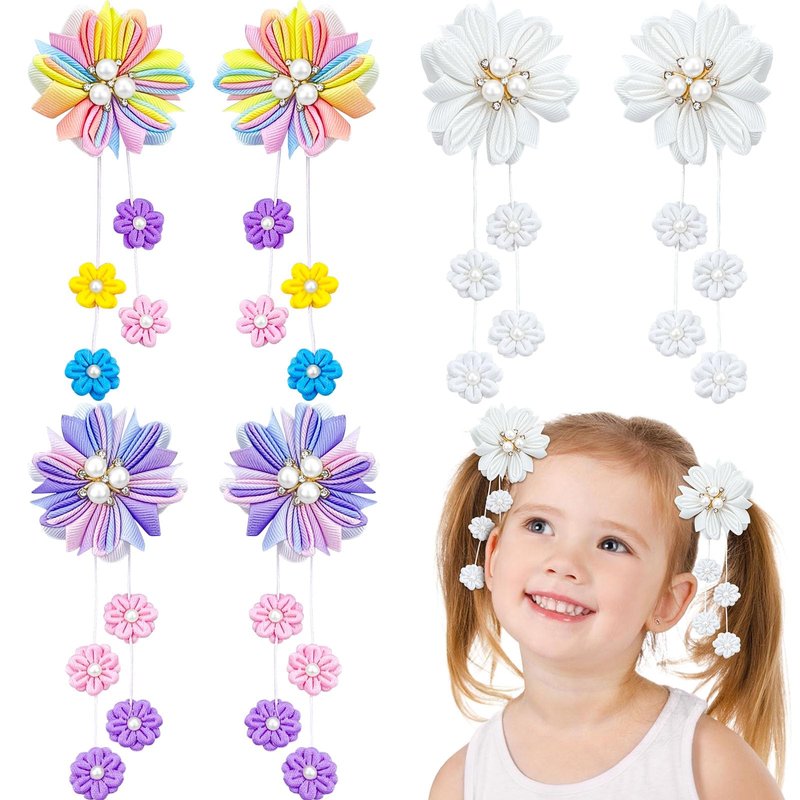 - 【Material】Flower hair bow clips are made of premium ribbon. Beautiful small flower hair clips with tassels, must-have hair accessories for your little girls, make you easily stand out from the crowd and get many compliments.