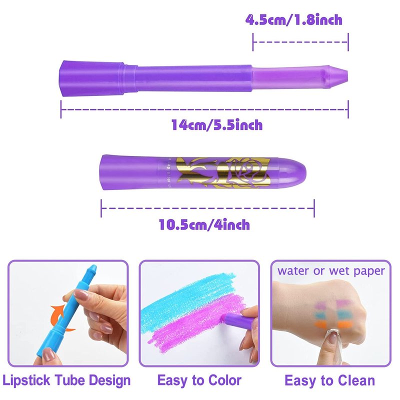 - 🌈【EASY TO USE AND WASH】The face painting kits for kids and adults are designed to allow you to draw faces faster. Facial crayons have a twistable design that can be twisted and adjusted to fit your body or face. Fluorescent paint outdoor are very easy to remove makeup, just use regular makeup remover wipes to wipe the skin, which can save you time and energy.