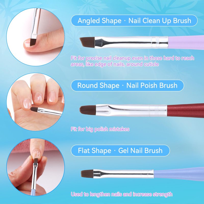 - NAIL BRUSHES FOR EVERY NEED: Our nail art brush kit includes a diverse range of brushes, including a French brush, sharp oval brush, oval brush, flat brush, liner pen brush, and double-ended dotting pen and liner pen brush. From intricate patterns to delicate details, these brushes allow you to use your creativity and achieve your dream nail art looks