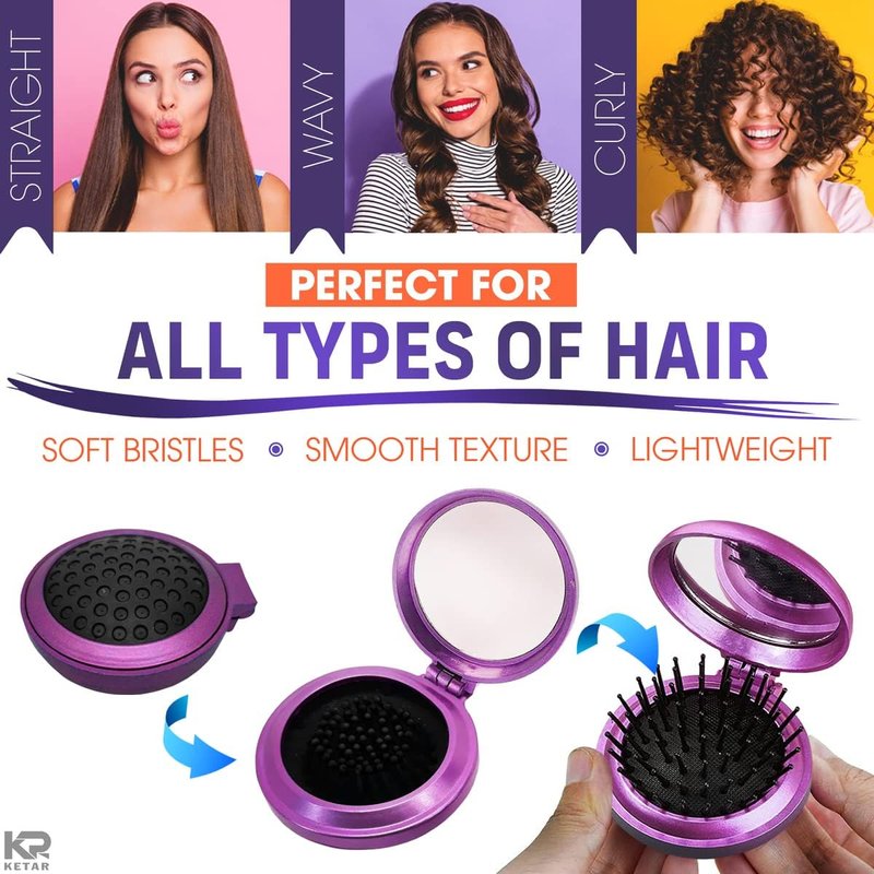 - Wide Uses of Folding Hair Brush Comb: This mini comb travel round brush is suitable for thick, thin, curly, straight, dry, wet, extensions and wigs, and these pocket mirror for women also works with most ages whether male or female, these small brushes for hair perfectly fits into pockets, backpacks.