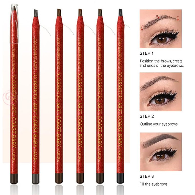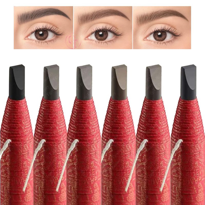 6pcs Waterproof Eyebrow Pencil Pull Cord Peel-off Microblading Brow Pencil Long Lasting Eye Brow Pencil for Marking, Filling and Outlining, Tattoo Makeup (Red Paper-Medium Brown Core)
