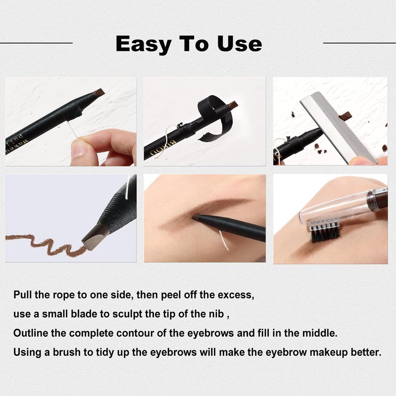 - Easy To Use:Pull the rope to one side, then peel off the excess, use a small blade to sculpt the tip of the nib (more durable than liquid eyebrow pencil). Outline the complete contour of the eyebrows and fill in the middle. Using a brush to tidy up the eyebrows will make the eyebrow makeup better.
