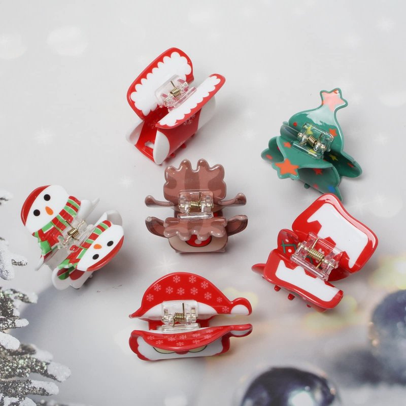 Xmas hair accessories variety of Styles: 6pcs full of Christmas elements in this kind of hair clips such as snowman, elk, Christmas tree, Christmas boots and Santa Claus designs hair clips