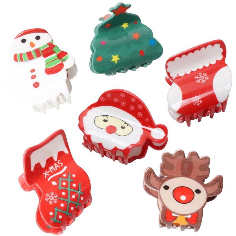 6PK Christmas Hair Accessories for Girls Women Christmas Hair Claw Clips for Kids Cute Christmas tree Xmas Boots Hair Clip Snowman and Father Christmas Hair Claws