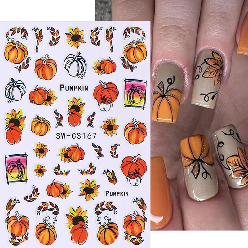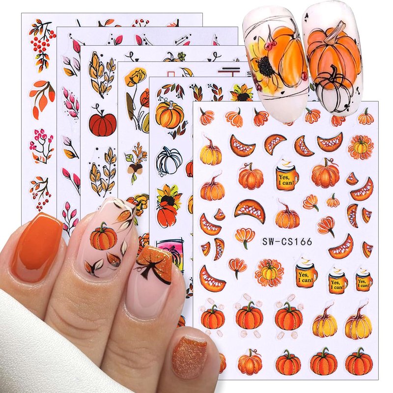 - Quantity: You will get 6 sheets fall nail art stickers decals for nail art, Fall Leaves Fruit Pumpkin Nail Stickers, 3D self-adhesive nail design which can offer you multiple choices, meet your fall nails decoration needs