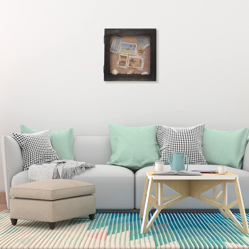 The black shadow box 5x5 inch with exterior depth of 2 inches and interior depth of 1 inches, which was real glass instead of plexiglass, great for creating your own display of keepsakes, collectables, photos and small trinkets and shells, insects and butterfly stuffed to make a very special keepsake to gift or keep. Weathered wood finish gives the little display shadowbox a vintage look, not only a great home decor, hanging on the wall or standing on the tabletop, but also a memory box gift for dog.