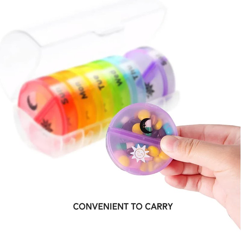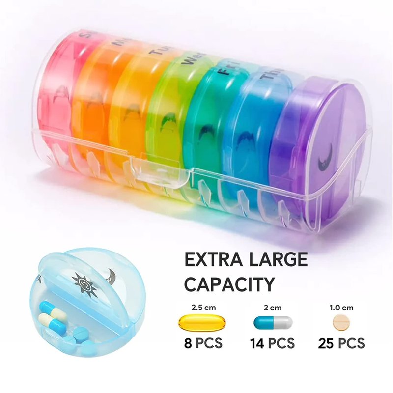 This handy Weekly Pill Organizer is the perfect solution to ensure that you stay on top of your medication. With separate compartments for each day of the week, you can plan your medication in advance and never miss a dose. The large compartments fit all sizes of pills, vitamins, supplements, candy, and other small items. The daily pill container features easy-to-open and close lids, making it perfect for your daily use. With this pill organizer, you can save time and never worry about forgetting to take your medication.