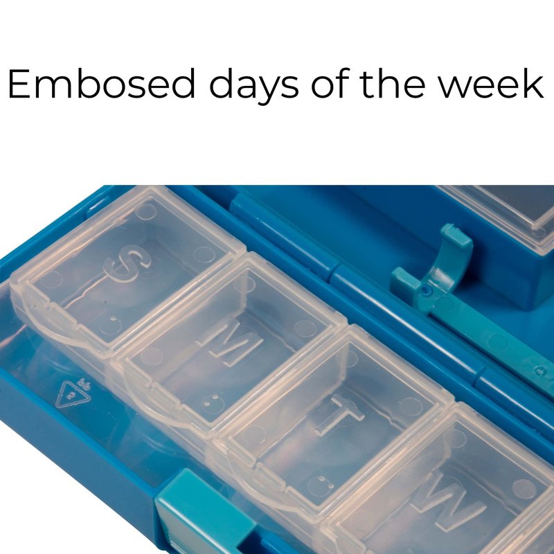 - Each pill compartment is contoured at the corners for easy access to each daily dose of oral medication