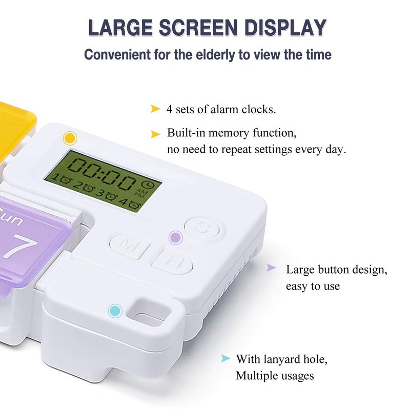 ◆The medicine box comes with a memory function, so there is no need to repeat the settings every day. It can set up 4 sets of alarm clocks at the same time.