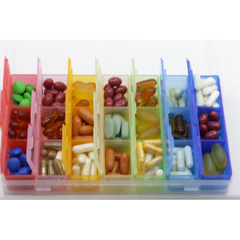 - Convenient organizer is perfect for arranging medication 7 days in advance! Time-of-day compartments make pill management simple & precise. Also comes with braille symbols for the time of the day for those who have difficulty with their eyesight.
