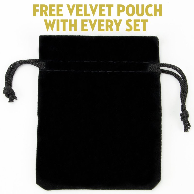 Conveniently packaged in a deluxe velvet pouch for easy storage, these dice have sharp edges that guarantee great random game play. The bright, vivid color of the dice makes them appear jewel-like.