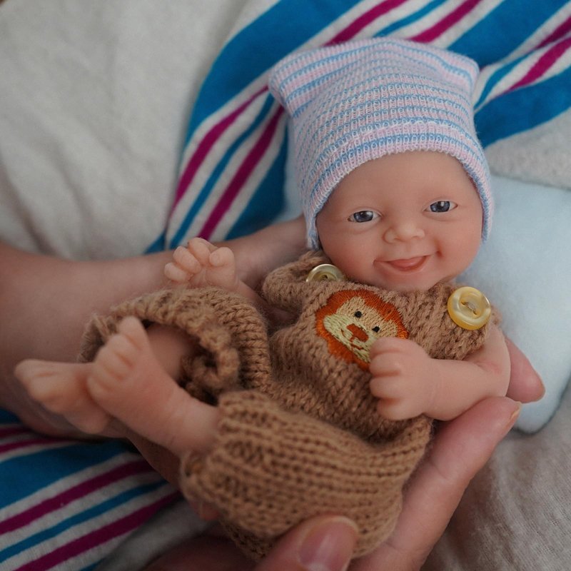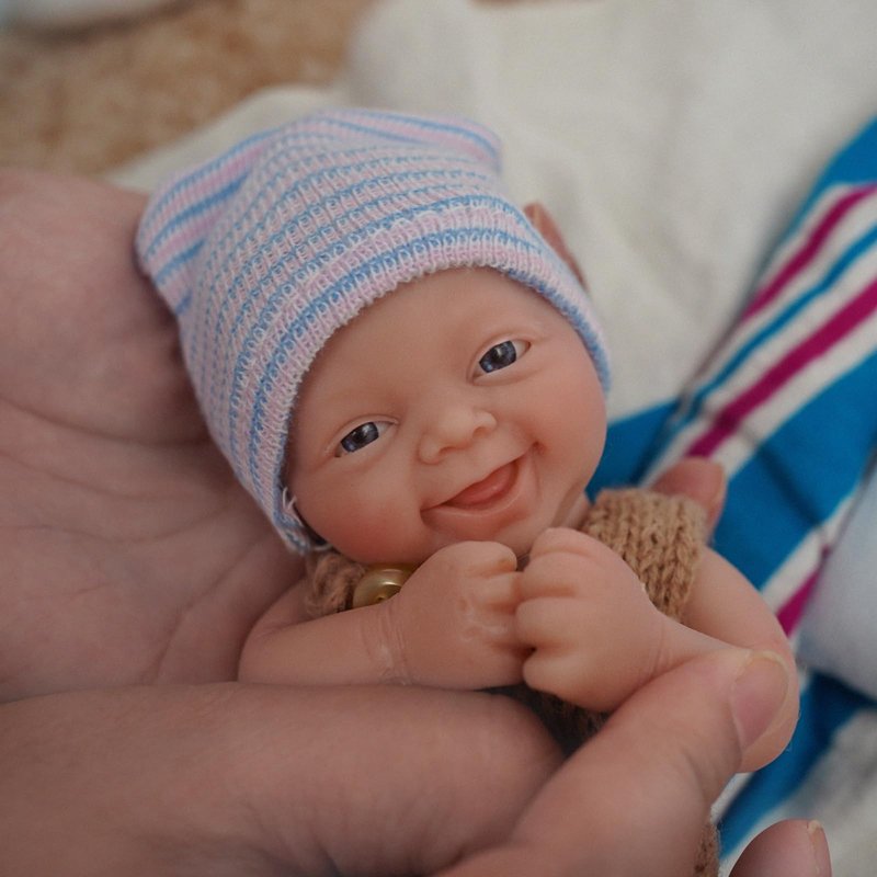 - 【Features】This is a mini reborn baby doll, anatomically correct boy. Size: 7 inch from head to toe, weighs 8.8 OZs, palm-sized, mini and portable; Eyes: can't blink; Washable, easy to care and maintain.