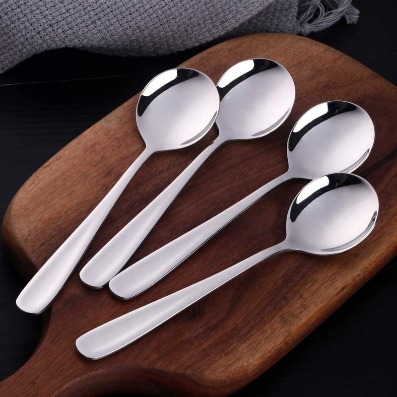 7-Inch Soup Spoons, Baikai Bouillon Spoon,18/10 Stainless Steel Finished Table Dinner Spoons Set of 4 (Silver)