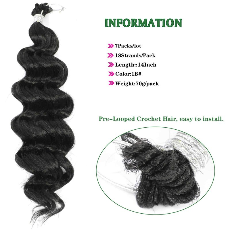 7 Packs Ocean Wave Crochet Hair Pre Looped 14 Inch Shoulder Length Braiding Hair Deep Wave Wavy Ocean Wave Crochet Braids Synthetic Hair Extensions for Women (14Inch, 1B)