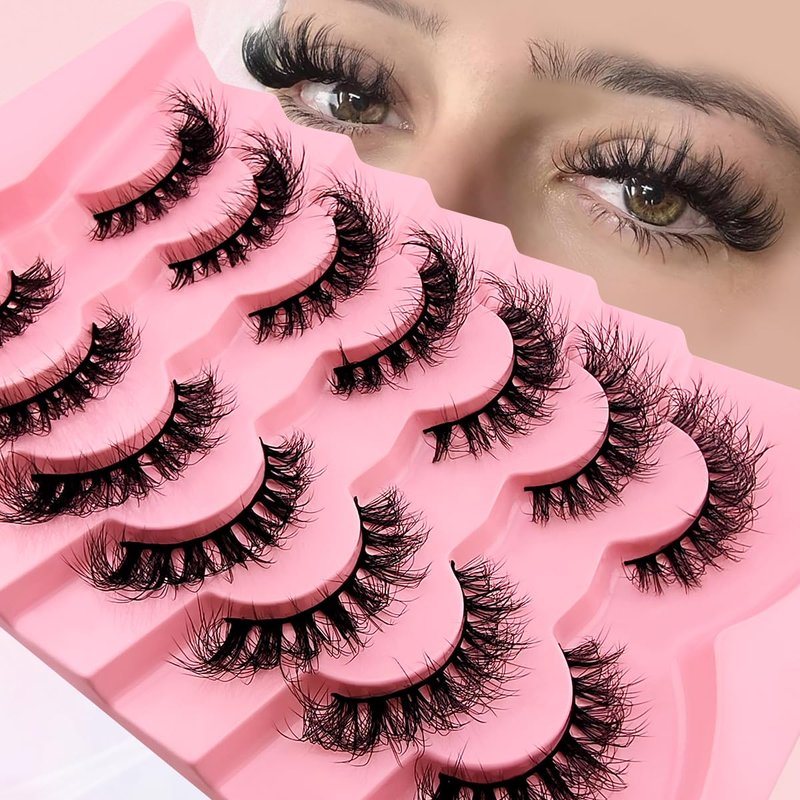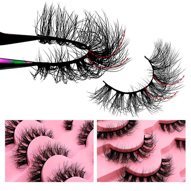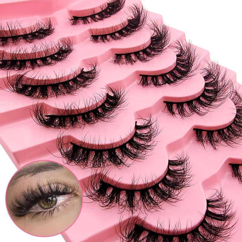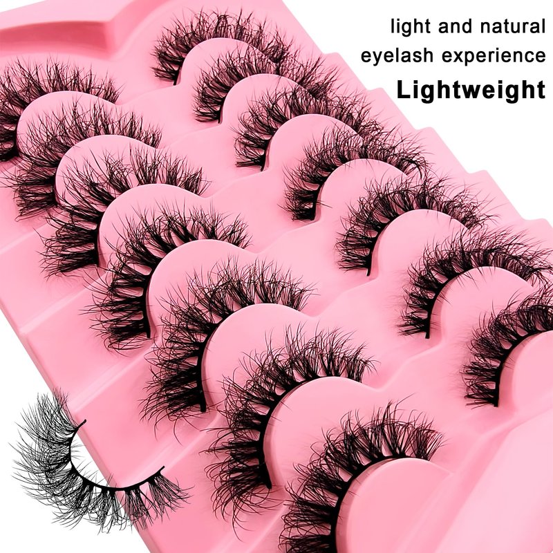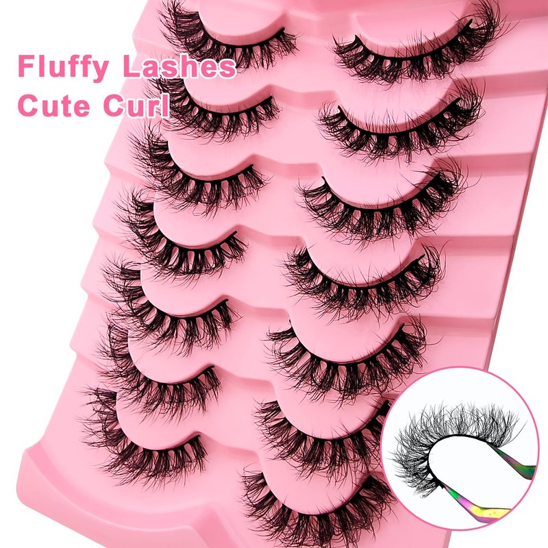 cat-eye lashes 20mm 15mm flu-ffy curly lashes thick volume dramatic fox eye lashes reusable natural look eyelashes that look like extensions lashes wispy faux mink lashes false eyelashes 7 pair packs