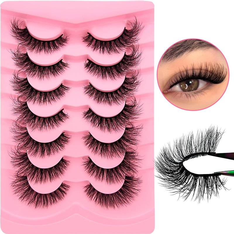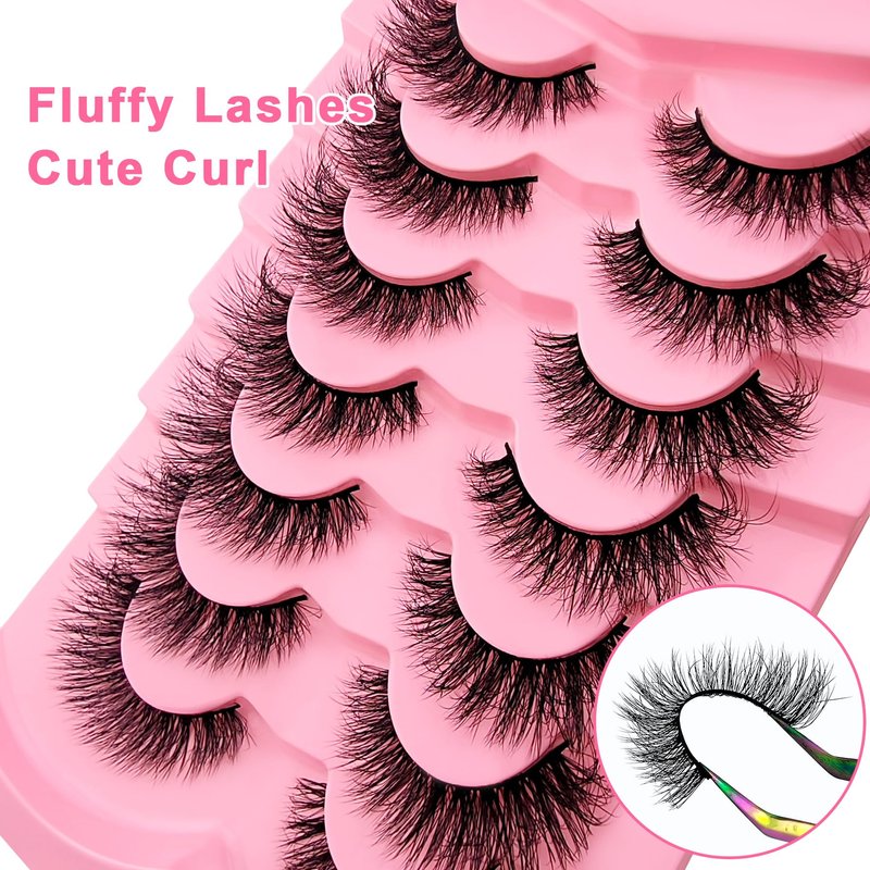 cat-eye lashes 20mm 15mm flu-ffy curly lashes thick volume dramatic fox eye lashes reusable natural look eyelashes that look like extensions lashes wispy faux mink lashes false eyelashes 7 pair packs