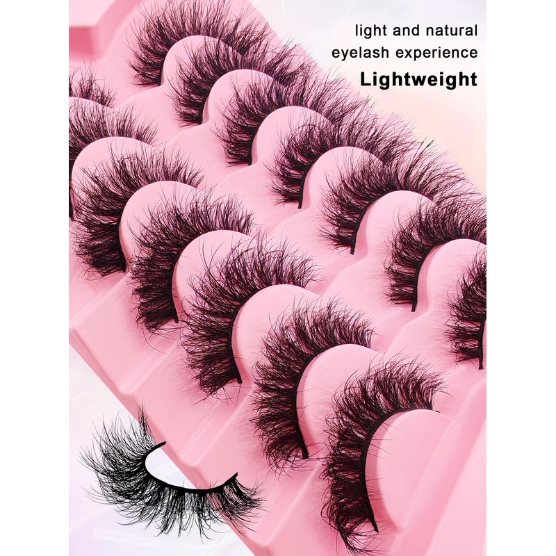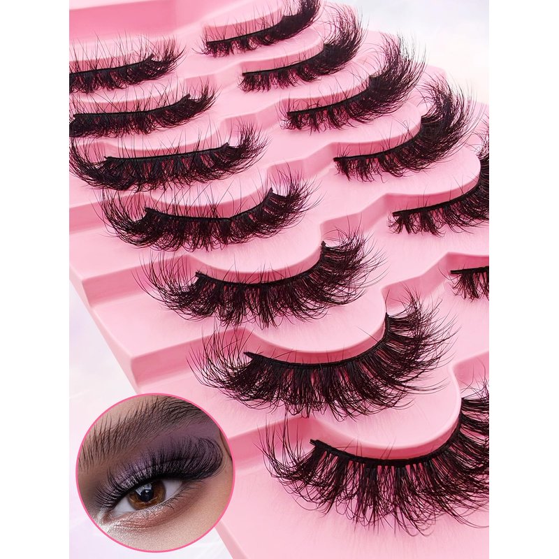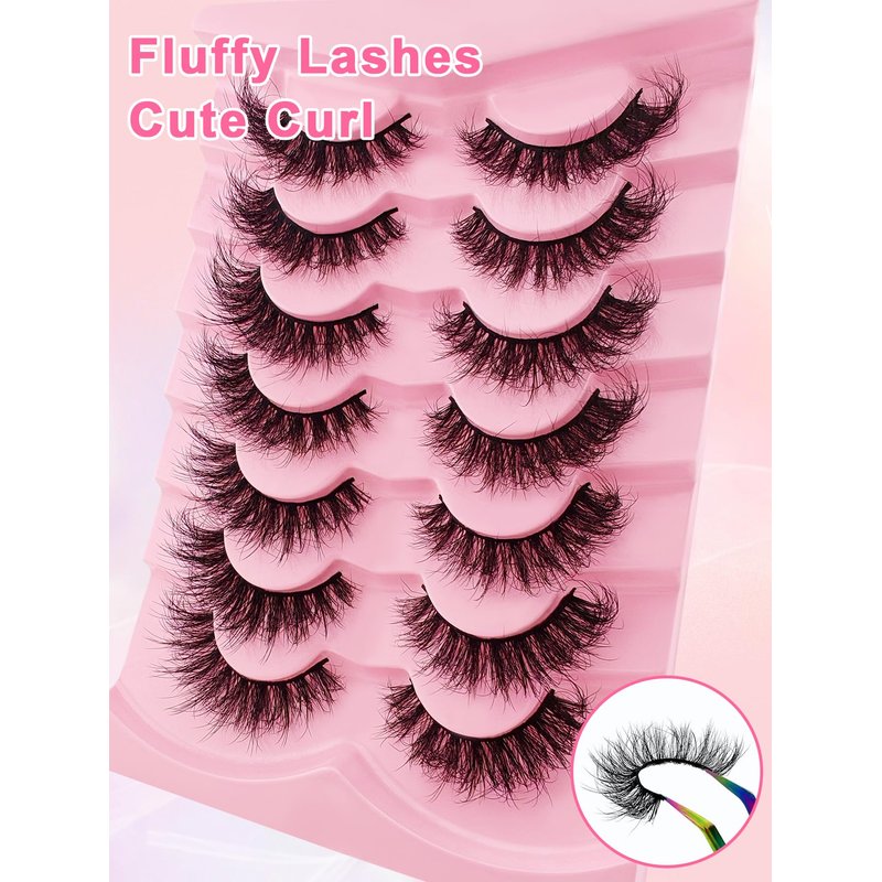 cat-eye lashes 20mm 15mm flu-ffy curly lashes thick volume dramatic fox eye lashes reusable natural look eyelashes that look like extensions lashes wispy faux mink lashes false eyelashes 7 pair packs