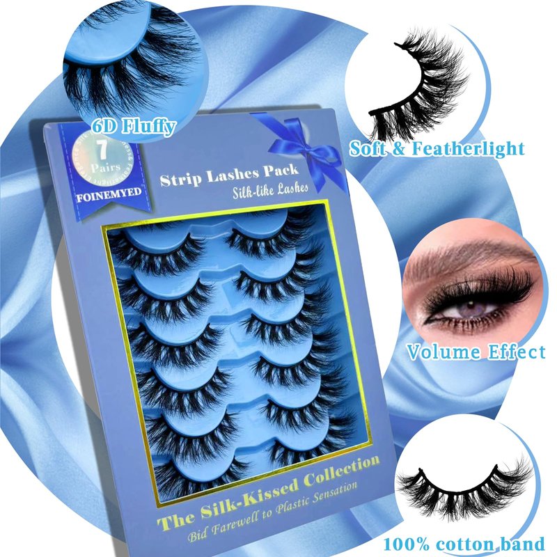 7 Pairs False Eyelashes Wispy Lashes Mink Fluffy Lashes Cat Eye Lashes Strip lashes Pack 6D Fake Eyelashes Wispy False Lashes by FOINEMYED