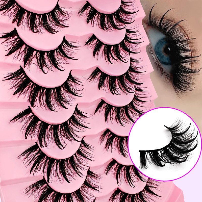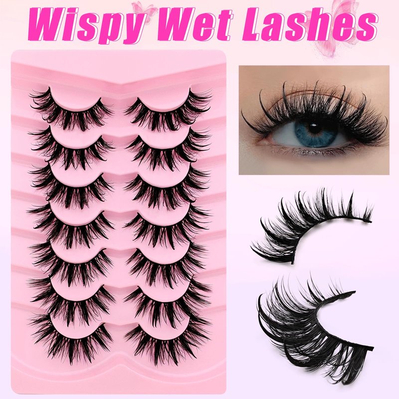 7 pairs manga lashes wet look 16mm flu-ffy d curl lashes anime lashes volume spiky lashes wispy fairy lashes faux mink false eyelashes dramatic cosplay Lashes Asian Japanese Korean lashes