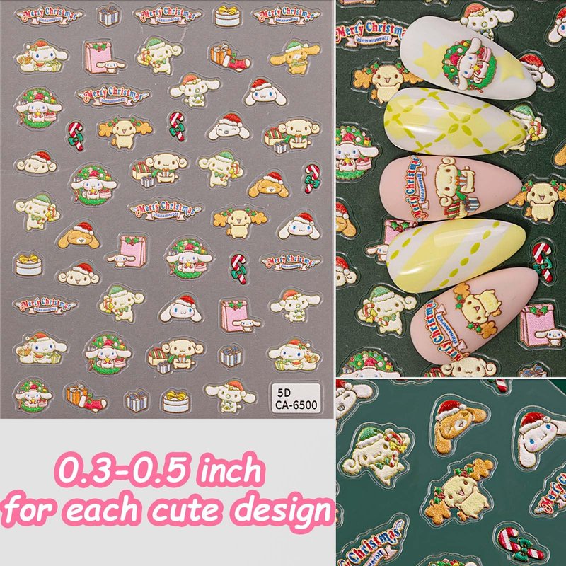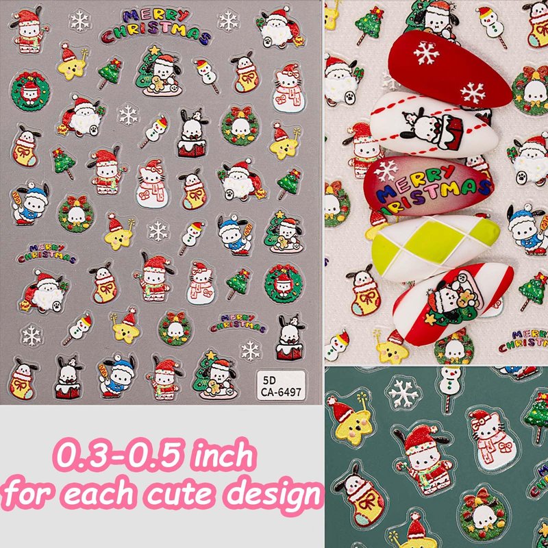 7 Pics 5D Christmas Nail Stickers, Small Cute C...