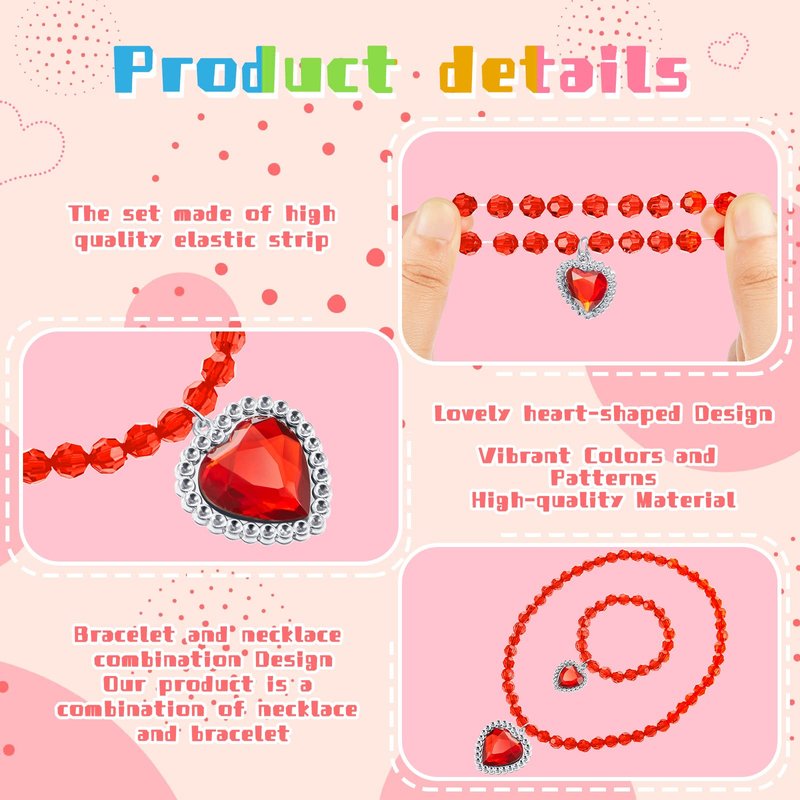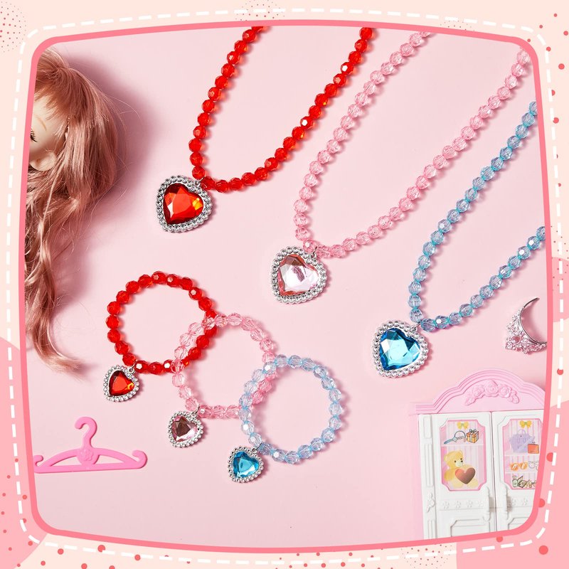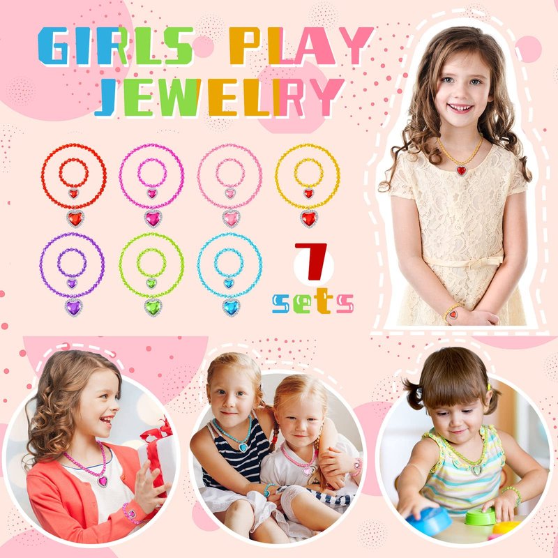 7 Sets Girl Dress up Jewelry Toddler Jewelry Princess Bracelet Necklaces Kids Costume Jewelry Set for Girl Tea Costume Party (Heart Pendant)