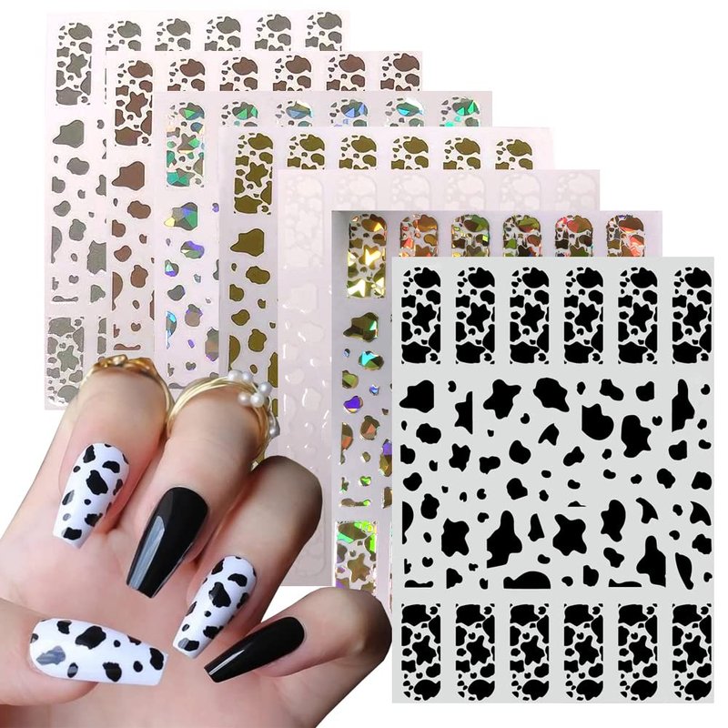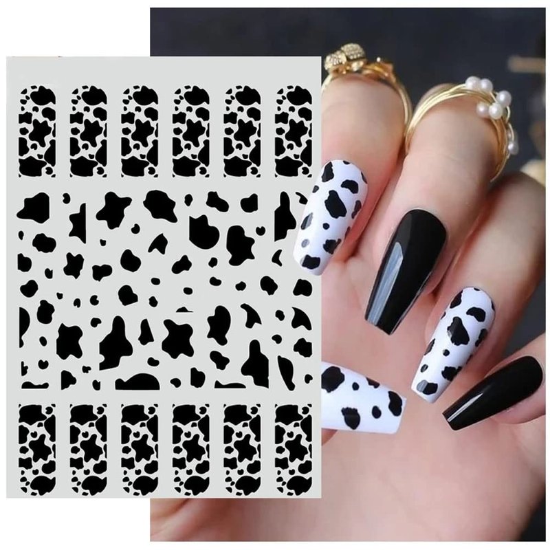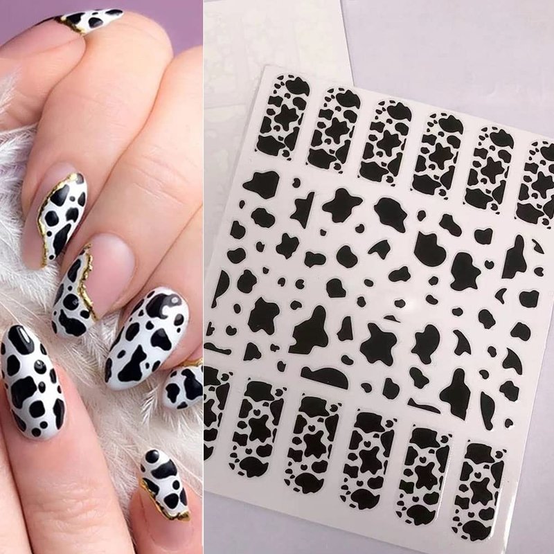 7 Sheets Milk Cow Nail Art Stickers Self Adhesive Nail Decals Graffiti Designs for Acrylic Nails Decorations Manicure Accessories