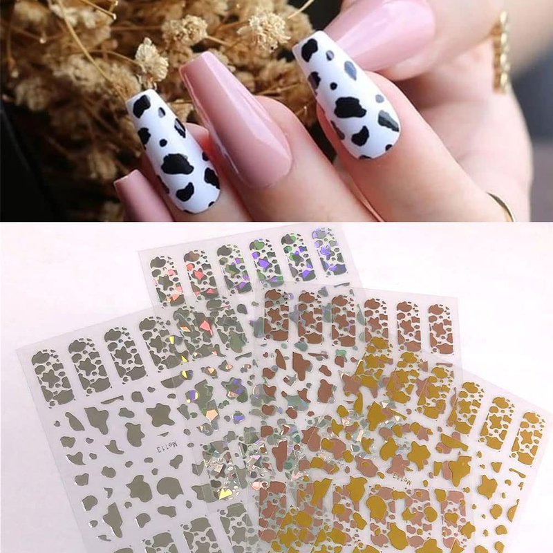 - Package:7 Sheets Cow Graffiti Nail Art Stickers Decals, unique and cute designs, Gold,Silver ,White, Black, Rose Gold, Laser Gold ,Laser Silver different colors and patterns. Perfect for nail designs accessories.