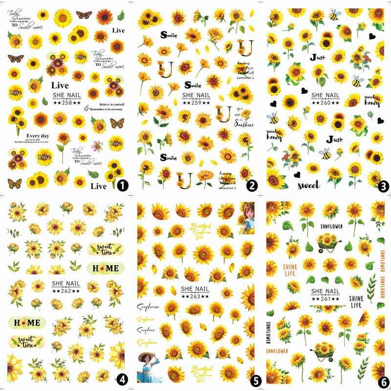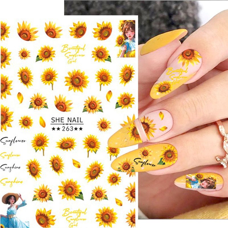 - Package Contain: You will get 7 sheets 3D self-adhesive spring/summer nail decals, designed with beautiful sunflower patterns, enough to meet your daily needs for nail art decorations. The variety flower nail stickes let you enjoy spring/summer happy manicure time