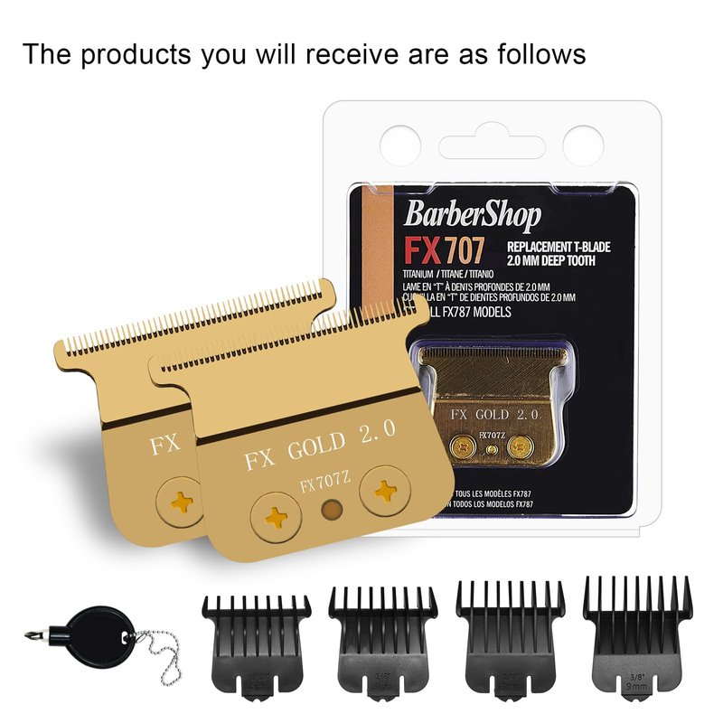 707Z Replacement Blade compatible with BaBylissPRO FX787 & FX726 Trimmers,2 Pack DLC Replacement Blades with 4 Guards Set Compatible with BaByliss Trimmer Blades,Gold
