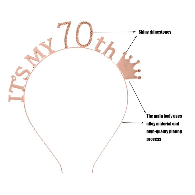 70th Birthday Gifts for Women, 70th Rose Gold Birthday Tiara and Sash, Happy 70th Birthday Party Supplies