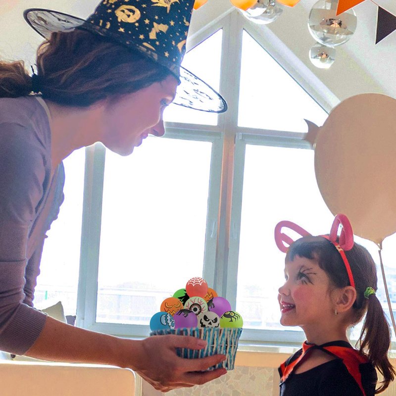 - Cute designs:8 Halloween Theme Character Designs in 8 bright colors:Orange-Pumpkin Face, Purple-Kitty Cat, White- Haunted Ghost, Green-Fairy-tale Witch, Blue-Funny Skull, Red-Spider web, Yellow-Tricky Spider and Grass green-Spooky Eyeballs. Our interesting design will attract children's attention at first sight, they will definitely love it.
