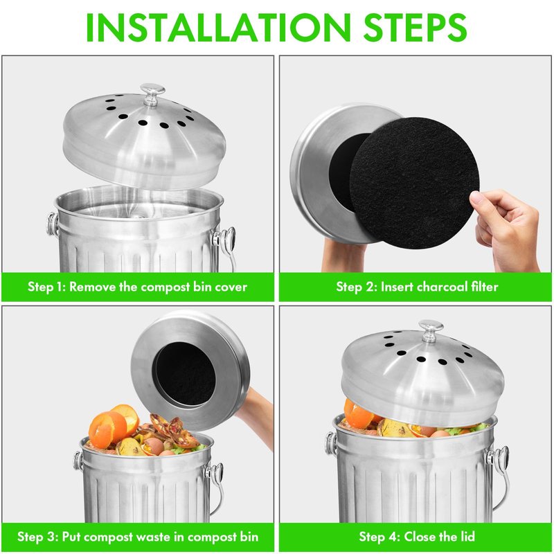 - Easy to set up: Just to inlay the compost bin filter into the cover of compost pail, the compost bin filters will work. The compost bin filter also can be cut out to your required size.