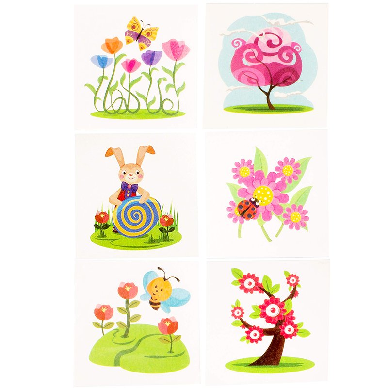 • Big Mo’s Toys Summer And Spring Style Tattoos come in packages of 72 and are 2” x 2” each.