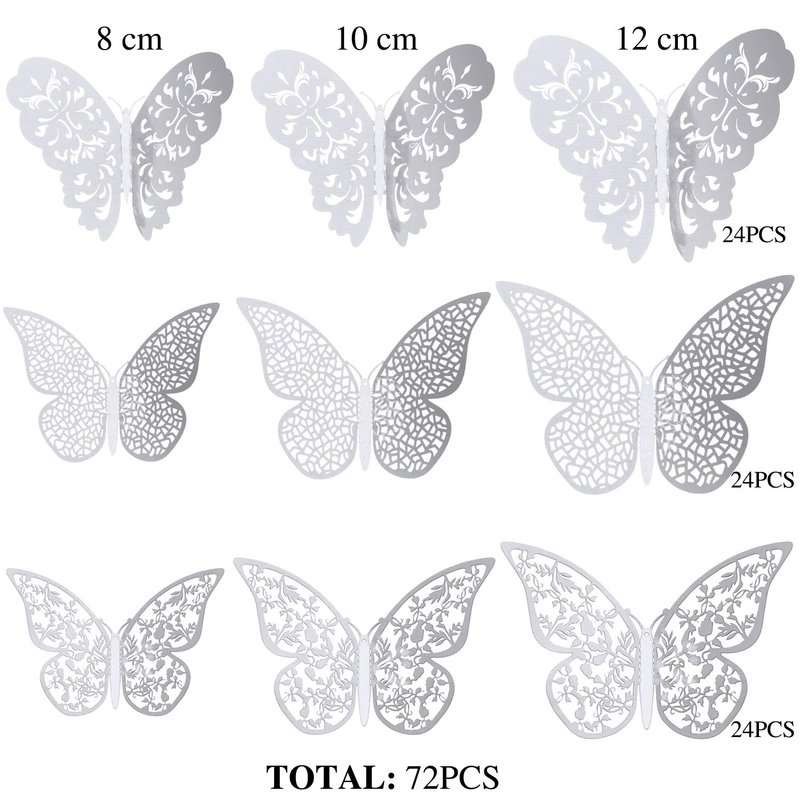 - 3D hollow-out butterfly wall decals: the package contains 3 sizes of 3D butterfly wall stickers in 3 different styles, totally 72 pieces stickers; These stickers are suitable for serving as wall decoration or DIY home decor