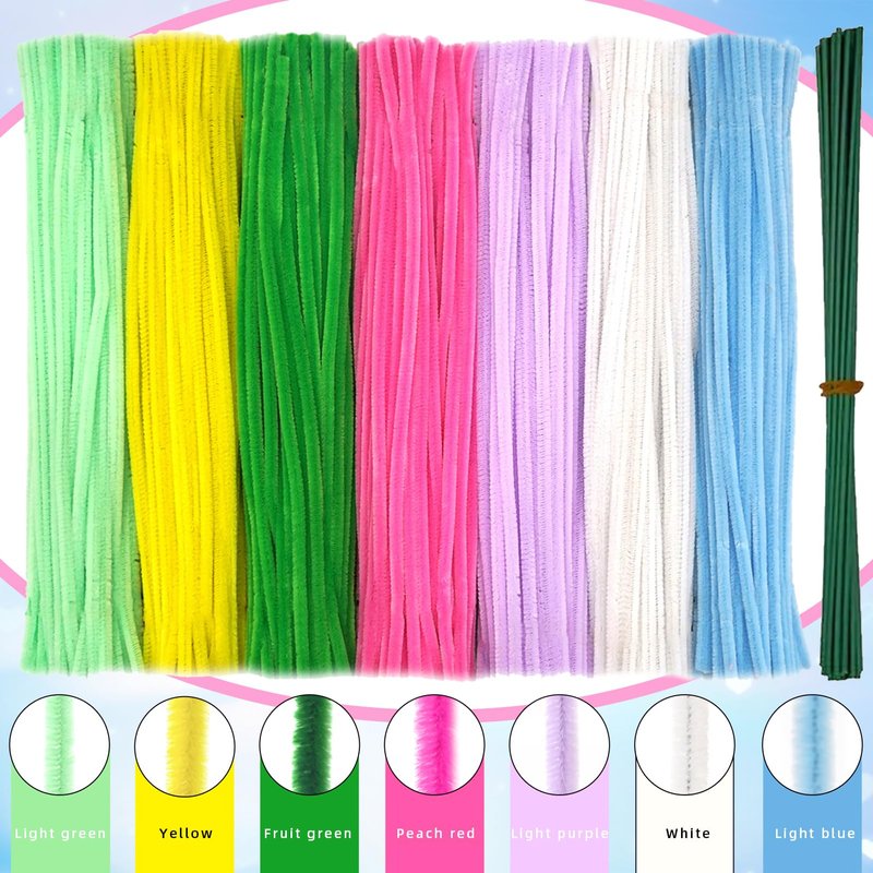 - 【Valuable Set】 600 pieces pipe cleaners in 6 color with 20 pieces green flower stem wire, Great for Adult or kid's crafting projects, worked great for making ornaments or bouquet