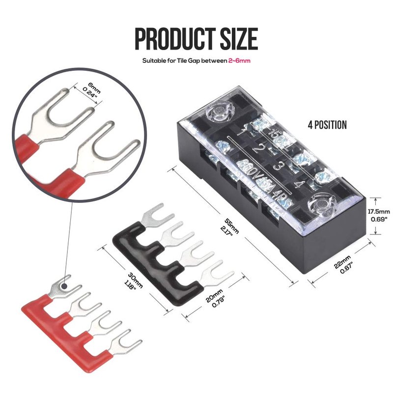 - ★【Protect Cover】 - Our dual row screw terminal strips that also include a clear cover to protect accidental touching of the terminal. It will be more safer when the terminals are protected by snap-in plastic "lids". Be careful when mounting these covers. Once the connections have been made, clear plastic covers are included that push lock into place to protect the terminals.
