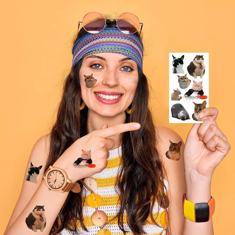 74Pcs Cats Tattoos for Kids, Funny Cats Meme Tattoos, Cat Stickers Waterproof, Cats Party Decorations, Cats Party Favors for Kids, Boys, Girls, Men, Women(10 Sheets)
