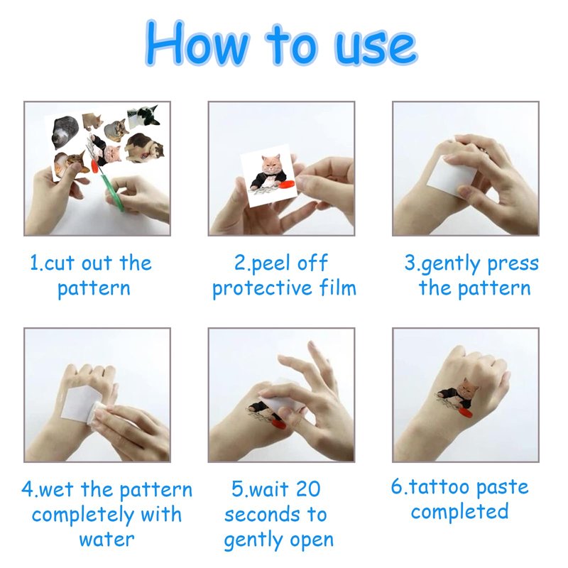 Package Including: 10 sheets cats theme tattoos stickers, the size of each sticker is 4.7*2.6inch.