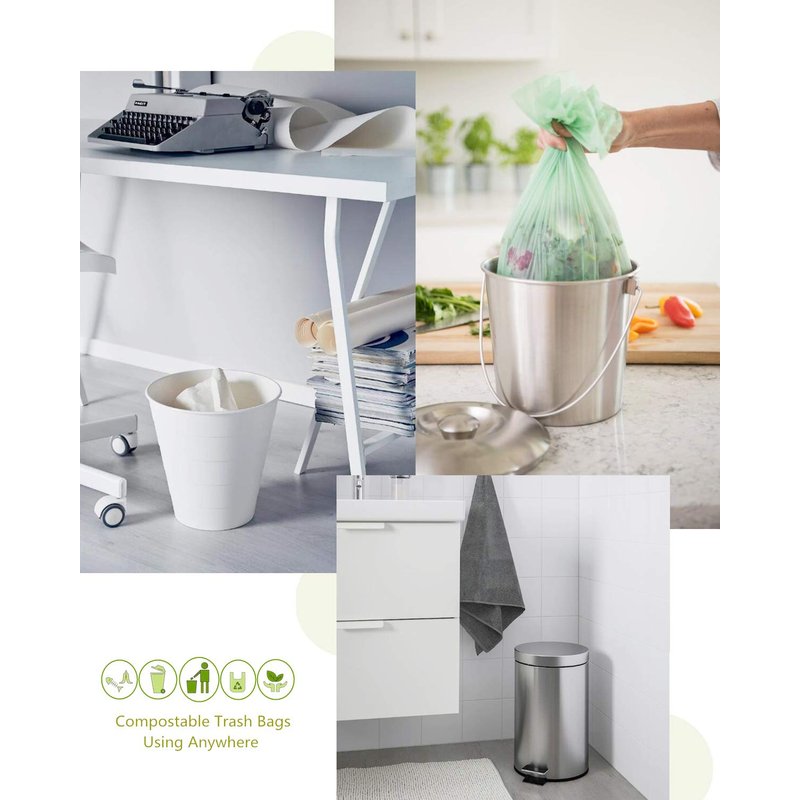 - 【Reduce White Pollution】: Our 1.2 gallon trash bags are made of Plastarch material(PSM), which is based on natural renewable plant starch extract. Not suitable for backyard composting, but degradable under industrial conditions without causing damage to the environment.