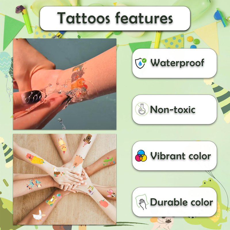 - [Features] Due to the eco-friendly, non-toxic components used in their creation, these tattoos are guaranteed to be skin-safe, long-lasting, and waterproof.