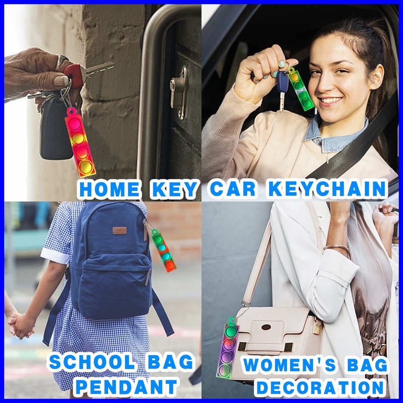 - ❤️MINI POP KEYCHAIN TOYS : Mini pop keychain toys are lightweight, waterproof. Size: 3 *0.78 inch. Mini pop keychain can be hung on a school bag, a key can be hung, and it can be pressed to play.Can be reused and cleaned.