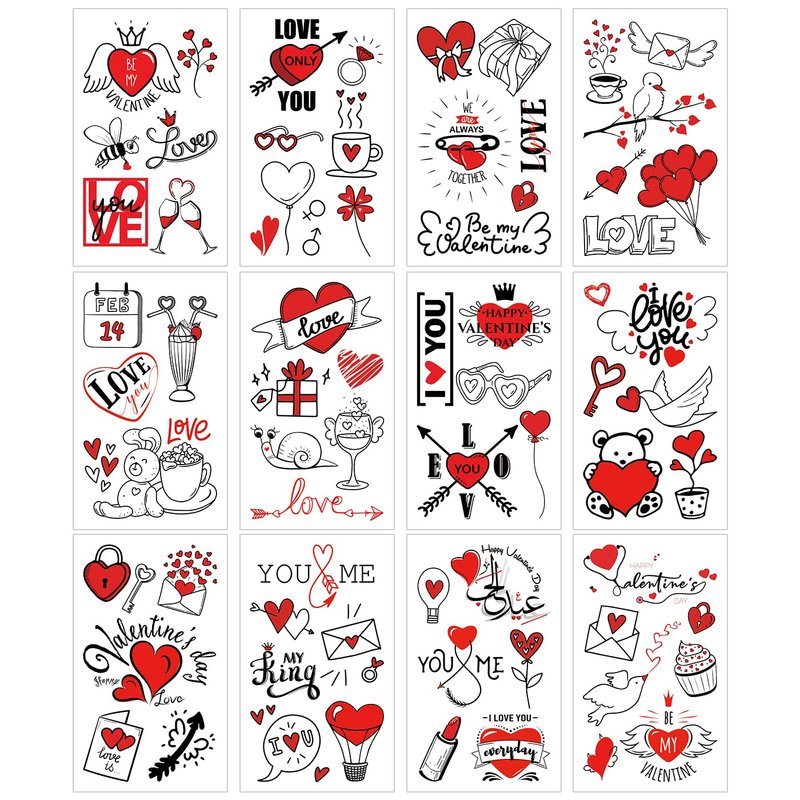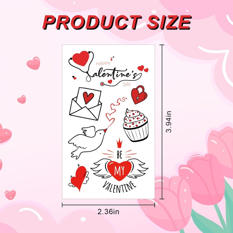 - Valentine's Day Tattoos Set: You will receive 12 sheets Valentines tattoo stickers. Each sticker contains many patterns, and the sticker size is 10.5*6cm/4.13*2.36 inches.