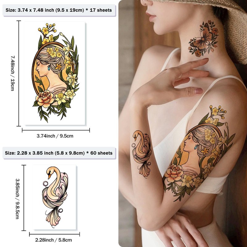 - 【WATERPROOF&LASTING】The temporary tattoos are waterproof. You don't have to worry about sweating, bathing, swimming, and other activities will wash it off. The fake tattoos will last for 3-5 days. If you are more careful, it will stay on your skin longer