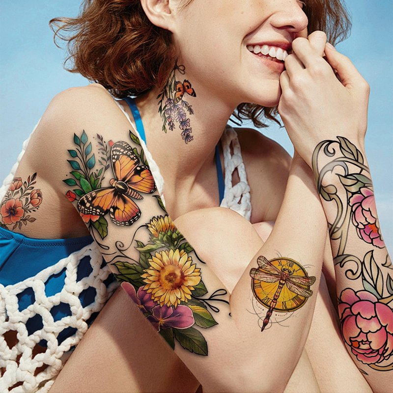 - 【REALISTIC&PAINLESS】If you are scared to get real tattoos, temporary tattoos for men, women, and teens will be your best choice. You can stick it on the arms, hands, fingers, legs, feet, collarbone, neck, and chest to show your personality