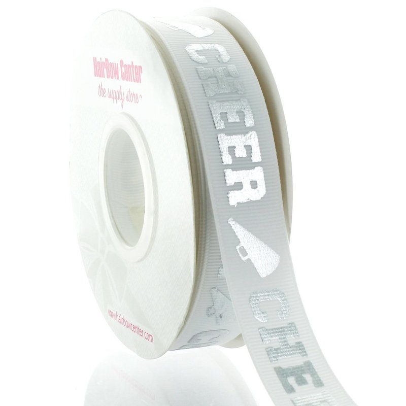 Printed Ribbon for Crafting, Scrapbooking and Hair-Bows. Get creative with HairBow Center's printed grosgrain ribbon! Choose from 5 yards, 25 yards or 100 yards roll of printed grosgrain ribbon. Cheer squads, dance teams and cheerleading teams will look better than ever with bows from this ribbon. The ribbon is perfect for all types of other craft projects: hair bows, decor, sewing, scrap booking, and more. The cheer print on the ribbon is slightly raised and is a shiny, reflective foil that really adds some sparkle. This grosgrain ribbon by HairBow Center has a beautiful sheen and the perfect consistency for shaping hair-bows as well as for use for various crafts. It is sturdy, but not too stiff! This ribbon is professionally packaged on a plastic core spool, allowing you to re-roll any extra ribbon and easily store it for later -keeping your ribbon wrinkle-free. (On rare occasions, your ribbon may be wrapped without the plastic core if we are low on inventory and must cut down from a larger spool). The ribbon print is extremely durable and will not rub or flake off under normal wear. **25yd and 100yd reels may contain a splice**Shipping Summary: