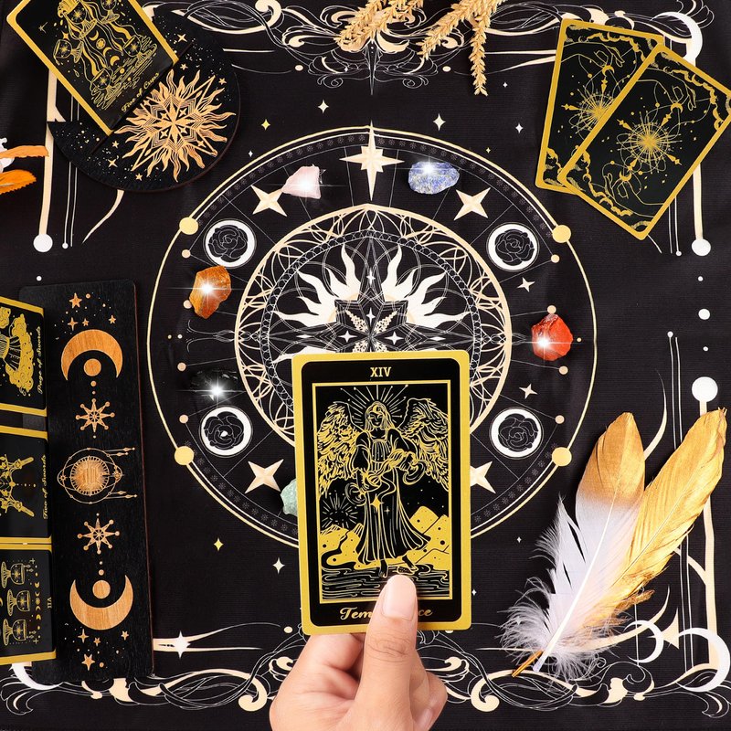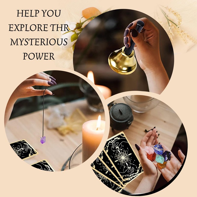 - ☪️【What You Will Get】78 Tarot cards deck, 2 extra commemorative cards. Many practical accessories: 2 wooden tarot holders, luxurious velvet tarot bag, 7-color chakra gems, witch bell, natural amethyst pendant, tarot table cloth, 3 feathers, detailed guide book. All of these would be accommodated in a solid gift box, helping you complete every divination ritual.