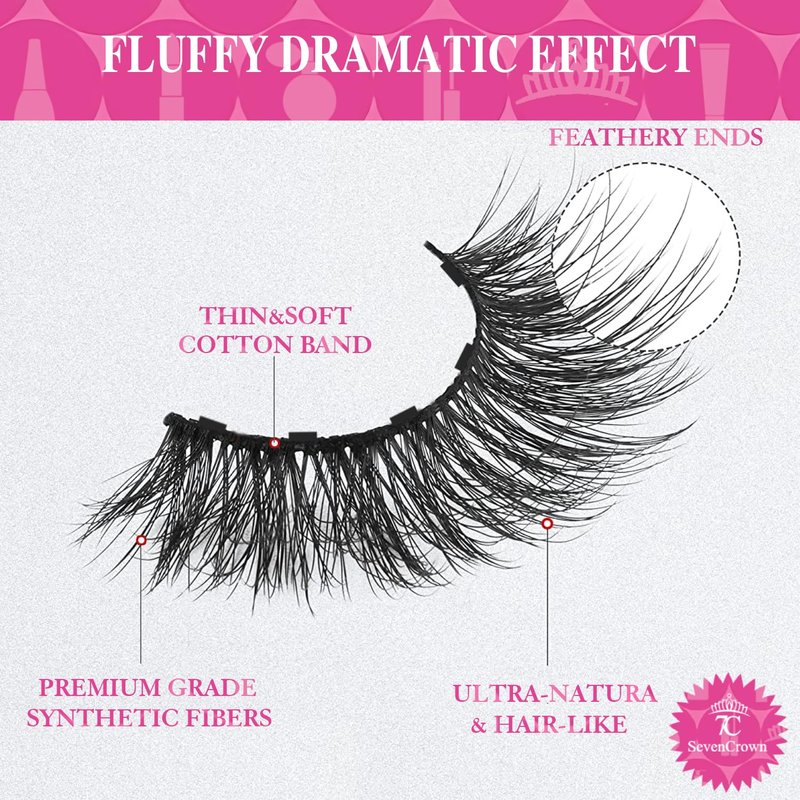 - 【HIGH QUALITY EYELASHES,HAND-MADE,MORE QUANTITY 】7C SevenCrown Magnetic Eyelashes 8D faux lashes adopt advanced mink hair-like synthetic fibers(ultra thin, only 0.06mm thickness), feel incredibly soft and weightless. Lashes are 100% handcrafted after a dozen processes, we are fastidious in every steps and we always aim for perfection.
