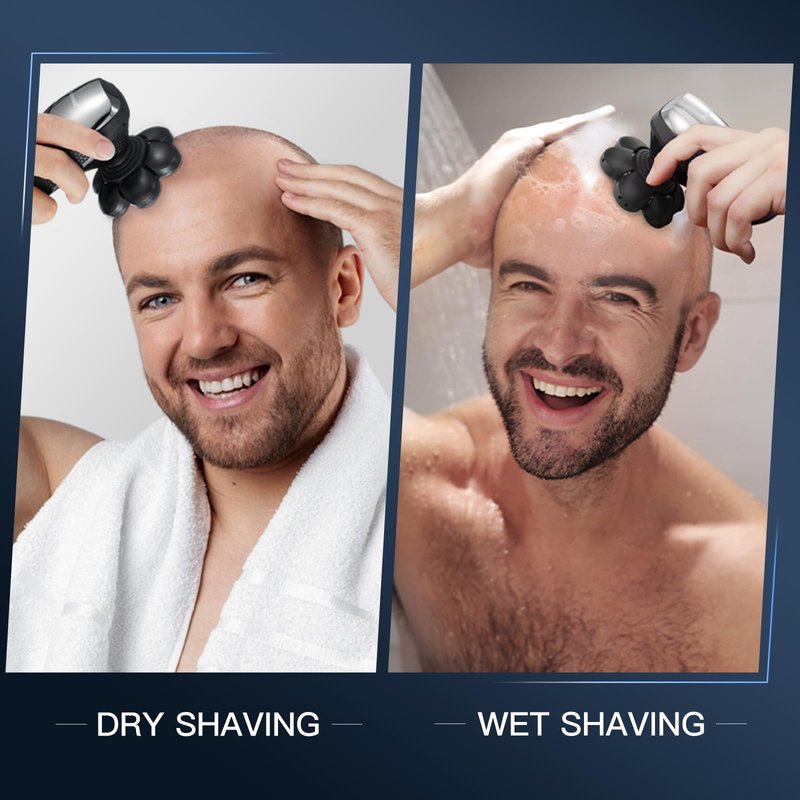 - 【Fast & Smooth Shave】 All heads of our beard trimmer use skin-friendly and durable blades. Our electric razor with 7D floating heads and blades can automatically adapts to every angle of your face, neck and head even the jaw, to remain close contact with skin, providing you a efficient, comfortable, smooth and close shave experience.