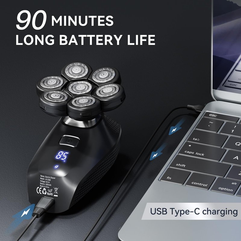 - 【USB Charging & LED Display】 The built-in lithium battery of this head shaver is powerful and long-lasting. USB quick charge for 2 hours, enjoy 90 minutes of shaving. The LED Display can easily check the power percentage, so that you can charge in time to avoid the trouble of low power during use.